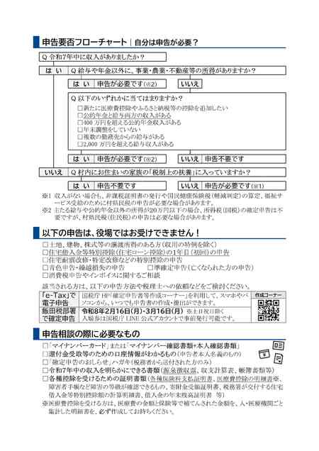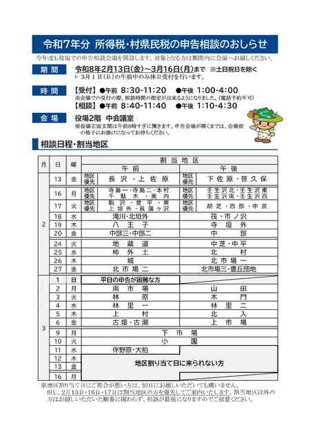 ホーム > トピックス > 令和7年分所得に係る所得税・村県民税の申告相談のおしらせ