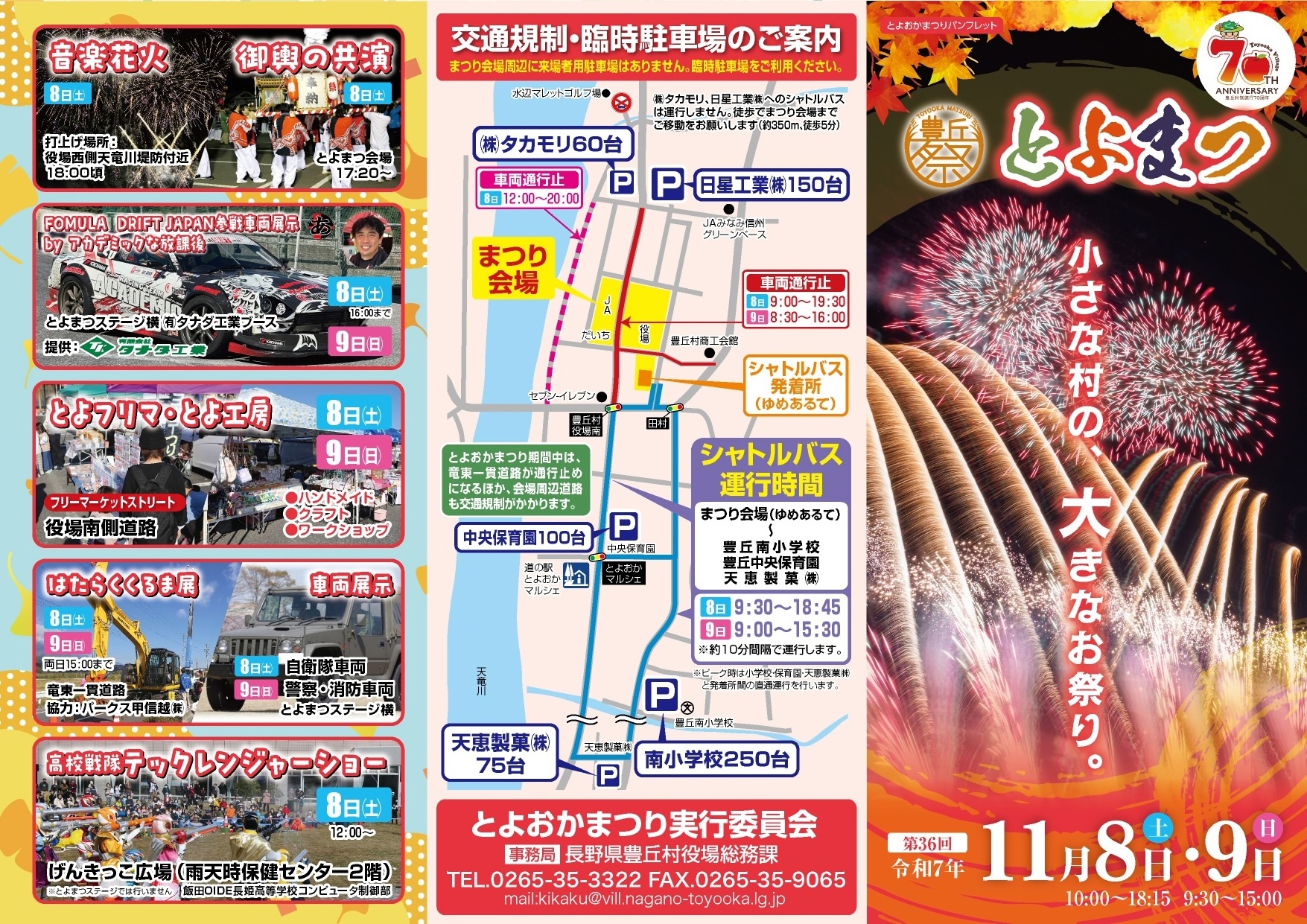 豊丘村は本年、村制施行70周年を迎えました。これまで以上に盛大なものになるよう、多くの皆様が楽しめる企画を準備しております。
