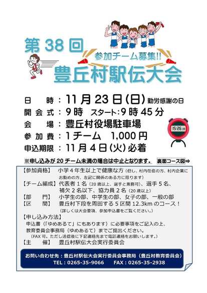 参加申込書はこちら → 第38回 豊丘村駅伝大会 参加申込書